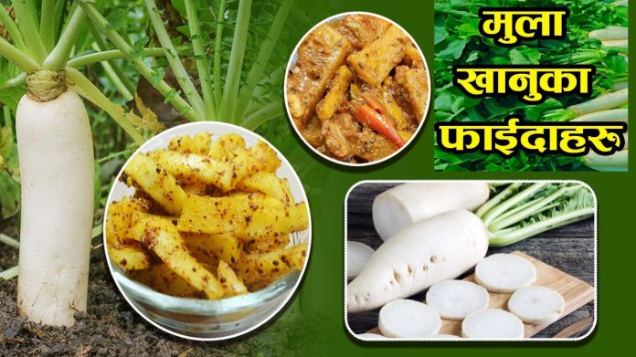 धेरैले मुलालाई निकै सामान्य तरकारी वा सलादको रुपमा बुझेका हुन्छन् त्यसैले मुला खाने कुरामा खासै ध्यान दिँदैनन् । खासै महत्व नभएको वा बेतुकको मानिसलाई ‘मूला’ भनेर गाली गर्ने हाम्रो प्रचलनले पनि मूलाप्रतिको हेलत्व दर्शाउँछ । तर मूला हाम्रो स्वास्थ्यका लागि निकै फाइदाजनक हुने कुरा बुझियो भने सायद मूला हाम्रो अभिन्न अंग बन्नेछ । विज्ञहरुका अनुसार मूलाको सेवनले हाम्रो स्वास्थ्यमा पूराउने फाइदा यस्ता छन्-