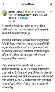 रानाले सामाजिक संन्जाल फेसबुकमा लेखेका छ्न –