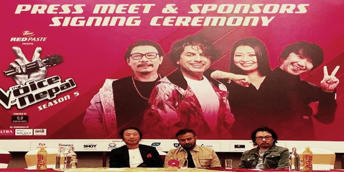 काठमाडौं:= गायन रियालिटी सो ‘द भ्वाइस अफ नेपाल’ सिजन-पाँँचको प्रसारण असोज ५ गतेबाट आरम्भ हुने भएको छ । बुधबार काठमाडौंमा पत्रकार भेटघाटबीच पाँचांै सिजनको बारेमा जानकारी गराइएको हो ।