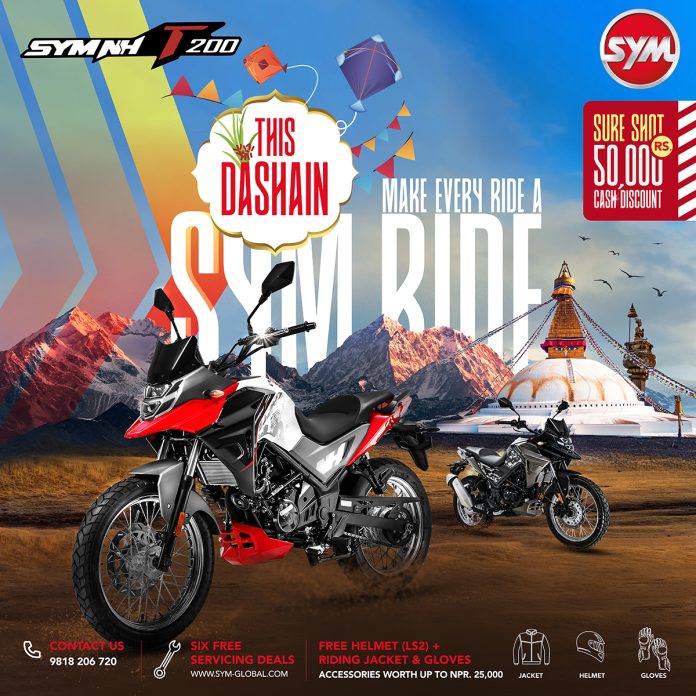 काठमाडौं:= एसवाईएमको आधिकारीक बिक्रेता केजी इन्टरनेशनलले ग्राहकलाई आफ्नो १८३ सीसी क्षमताको एड्भेन्चर मोटरसाइकलमा नै ५० हजार नगद छुट दिने स्कीम ल्याएको छ ।