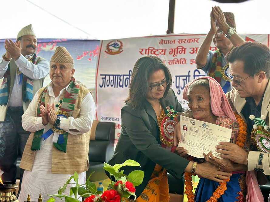 काठमाडौं := सरकारले करिब पाँच हजार भूमिहीन तथा अव्यवस्थित बसोबासीलाई जग्गाधनी पूर्जा उपलब्ध गराएको छ । सरकारले उनीहरूलाई व्यवस्थापन गर्ने प्रयोजनका लागि पूर्जा वितरण गरेको भूमि व्यवस्था तथा सहकारी मन्त्रालयका सहसचिव एवं प्रवक्ता गणेशप्रसाद भट्टले जानकारी दिनुभयो ।