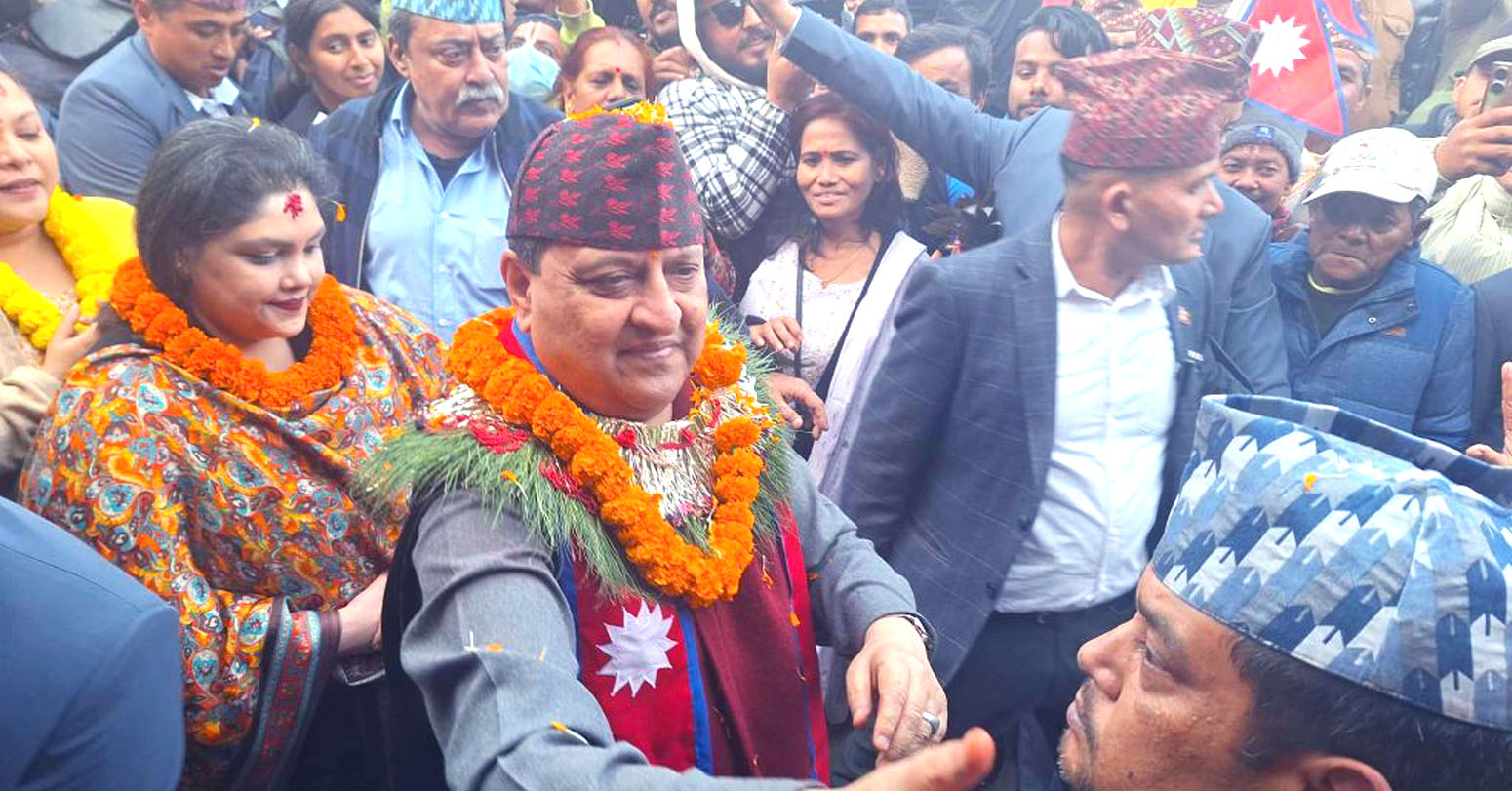 उहाँको स्वागतमा स्थानीय जनताको ठूलै भिड जम्मा भएको थियो । पूर्वराजाको प्रतीक्षामा घण्टौँ अगाडिदेखि स्थानीय भेला भएका थिए । उनीहरूमध्ये धेरैले हातमा नेपालको झण्डा बोकेका थिए । भिड छिचोल्न सुरक्षाकर्मी र स्वयम्सेवकलाई हम्मेहम्मे परेको थियो ।