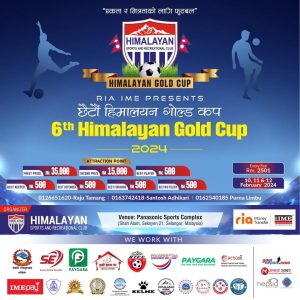 क्वालालम्पुर (मलेसिया):= छैठौं हिमालयन गोल्डकप २०२४ को खेल तालिका प्रकाशन भएकोछ । हिमालयन फुटबल क्लबको आधिकारीक फेसबुक पेज मार्फत फेब्रुअरी ४ तारीख तालिा प्रकाशन गरको हो ।