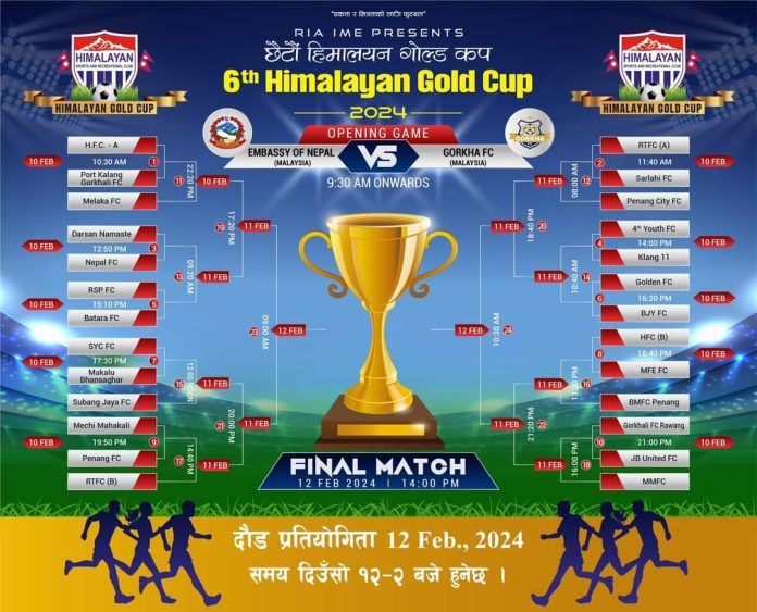 छैठौं सस्करणमा २६ टिमले प्रतिस्पर्धा गर्ने भएकोछ । फेब्रुअरी १०/११/१२ तारीख संचालन हुने खेलको उद्घाटन खेल नेपाली दुतावास मलेसिया र गोर्खा फुटबल क्लब मलेसियाका लोकल नेपाली सम्मिलित टिम बिच हुने हिमालयन फुटबल क्लबका अध्यक्ष सन्तोष कार्कीले जानकारी गराए ।