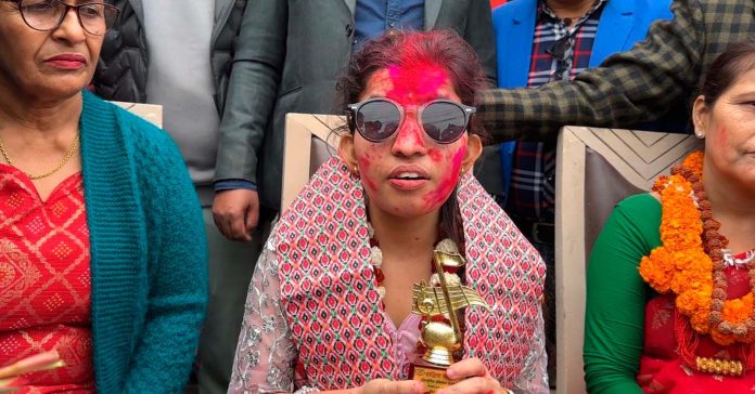 झापा:= भारतको चर्चित गायन रियालिटी शो ‘इण्डियन आइडल सिजन १४’ उपाधि दौडमा रहनुभएकी नेपाली गायिका मेनुका पौडेललाई झापामा भव्य स्वागत गरिएको छ । उहाँ टपटेनबाट टप आठमा जाने क्रममा आइतबार बाहिरिएपछि सोमबार झापा आइपुग्नु भएको हो, जहाँ उहाँलाई भव्य स्वागत गरिएको थियो ।