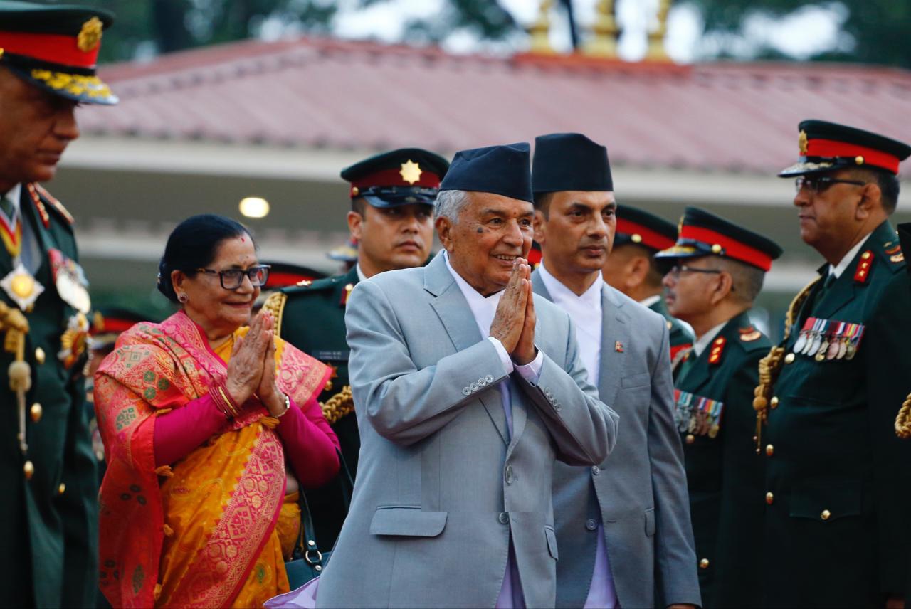 पौडेलको स्वागतका लागि उपराष्ट्रपति रामसहायप्रसाद यादव, प्रधानमन्त्री पुष्पकमल दाहाल प्रचण्ट, सभामुख देवराज घिमिरे, प्रधानमन्त्री प्रचण्ड, राष्ट्रियसभा अध्यक्ष नारायण दाहाल, उपप्रधानमन्त्रीहरू रघुवीर महासेठ, नारायणकाजी श्रेष्ठ र रवि लामिछाने त्रिभुवन अन्तर्राष्ट्रिय विमानस्थल पुगेका थिए।