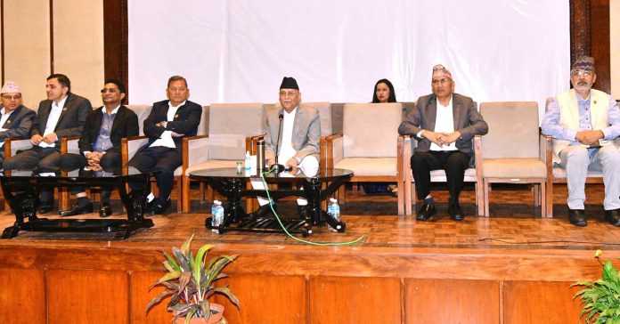 उहाँले बैठकका निर्णय सुनाउँदै अघि भन्नुभयोे, ‘स्पष्ट अल्पमतमा परेको सरकारले अझै पनि राजीनामा दिएको छैन । आजको बैठकबाट लामो समयसम्म राजीनामा नदिई बस्ने कुरा अनुचित कार्य हो । त्यसकारण अविलम्ब नेपाल सरकारका कामचलाउ प्रधानमन्त्रीको रूपमा रहेका प्रधानमन्त्रीलाई अविलम्ब राजीनामा दिएर राष्ट्रिय सरकार निर्माणको प्रक्रियालाई मार्गप्रशस्त गर्न बैठकले आहृवान गरेको छ ।’