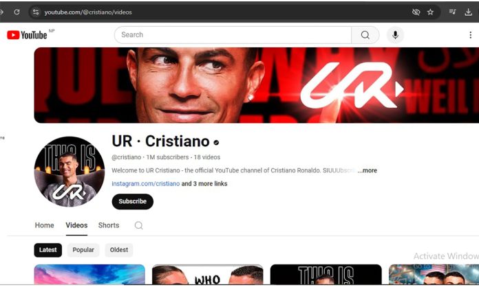 एजेन्सी := विश्वप्रसिद्ध स्टार फुटबलर क्रिस्टियानो रोनाल्डोले युट्युब च्यानल खोलेका छन् । उनले आजै एक घण्टा अगाडि खोलेको च्यालमा एक मिलियनभन्दा बढी सब्सक्राइब भएको छ ।