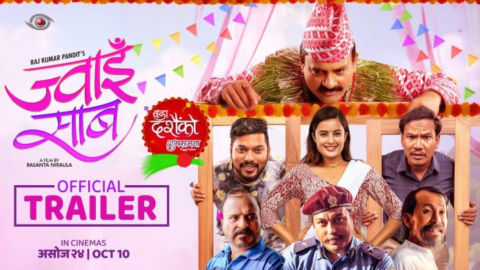 काठमाडौं := दशैंको फूलपातीको अवसरमा यही असोज २४ गतेदेखि सिनेमाघरमा आउने तयारीमा रहेको चलचित्र ‘ज्वाइँ साब’को ट्रेलर सार्वजनिक गरिएको छ । वसन्त निरौला निर्देशित यो चलचित्रको झण्डै तीन मिनेटको ट्रेलरमा ज्वाइँ साब बन्न पुरुष पात्रले गरेको संघर्षलाई रमाइलो शैलीमा देखाउन खोजिएको छ ।