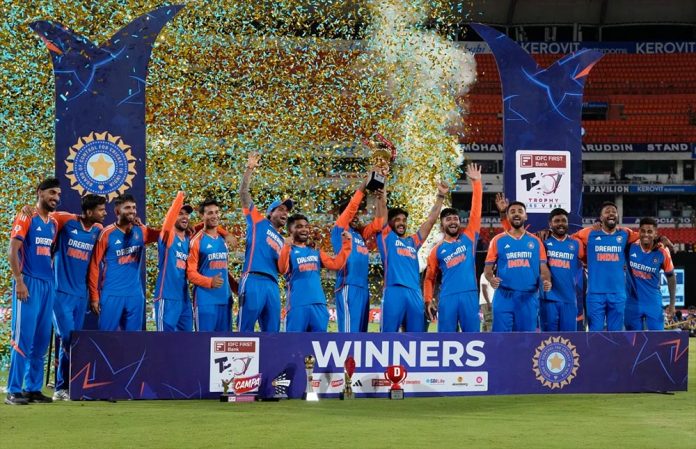 एजेन्सी := भारतले बंगलादेशविरुद्धको टी-२० क्रिकेट सिरिज क्लीन स्वीप गरेको छ । गएराती सम्पन्न सिरिजको तेस्रो खेलमा भारतले बंगलादेशलाई १३३ रनले पराजित गर्दै सिरिज ३-० ले जितेको हो ।