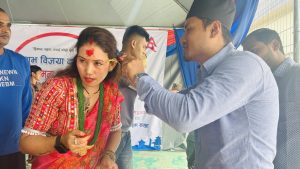 काठमाडौं := आश्विनशुक्ल एकादशीका दिन नवदुर्गाको प्रसादस्वरुप टीका लगाउन र आशीर्वाद थाप्न मान्यजनको घरमा जानेक्रम आजपनि जारी रहेको छ ।