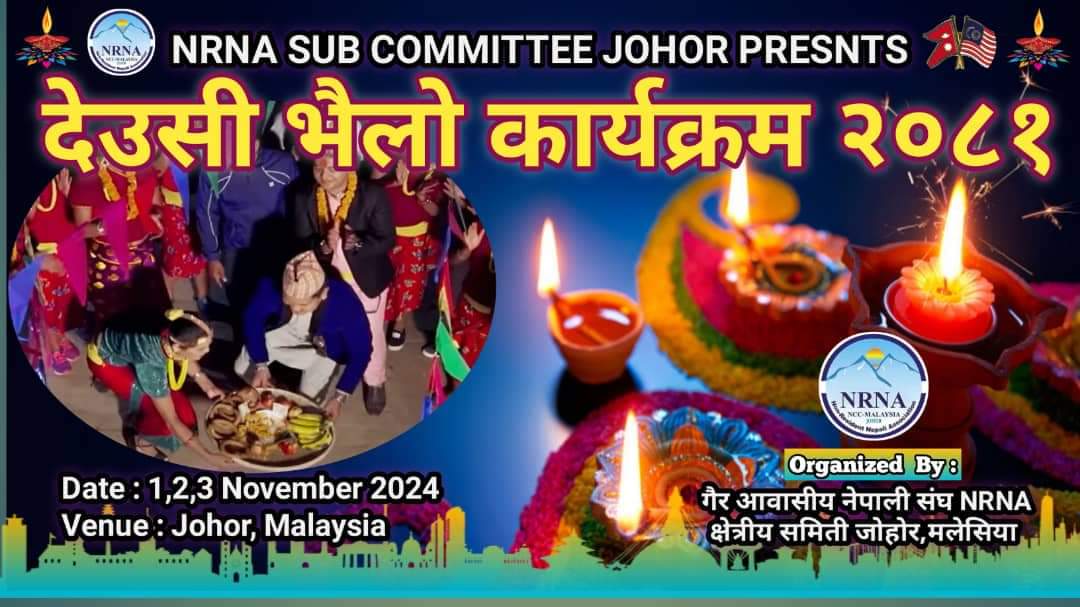 जोहोरबारुमा रहेका व्यवसायी , संघसंस्था र विभिन्न श्रमिकहरूलाई मध्यनजर गर्दै समय मिलेसम्म सबै स्थान तर समय अनुकूल भएबापत कुनै चार स्थानमा सबै श्रमिक सबै व्यापारीहरुलाई भेला गराई एनआरएनए जोहोर समितिले देउसी भैलो कार्यक्रम यहि शुक्रवारदेखि आइतवारसम्म गरि जम्मा ३ दिन कार्यक्रम आयोजना गर्ने भएका हुन ।
