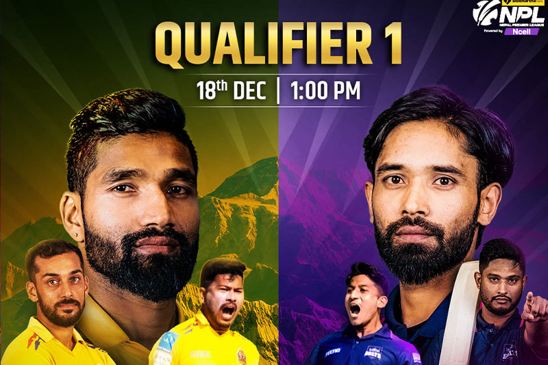 काठमाडौं := नेपाल प्रिमियर लिग एनपीएल क्रिकेटको पहिलो क्वालिफायर खेलमा सुदूरपश्चिम रोयल्स र जनकपुर बोल्ट्स खेल्दै छन् । खेल दिउँसो १ बजेदेखि कीर्तिपुरस्थित त्रिवि क्रिकेट मैदानमा सुरू हुने छ ।