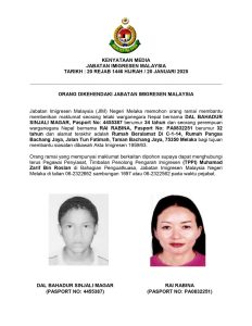 क्वालालम्पुर (मलेसिया):= मलेसियन अध्यागमन विभाग “इमिग्रेशन” ले मलेसियन अध्यागमन कानुन उलंघन गरेर फरार भएको आरोपमा दुईजना नेपाली कामदारको खोजिनिती गरिरहेको छ ।