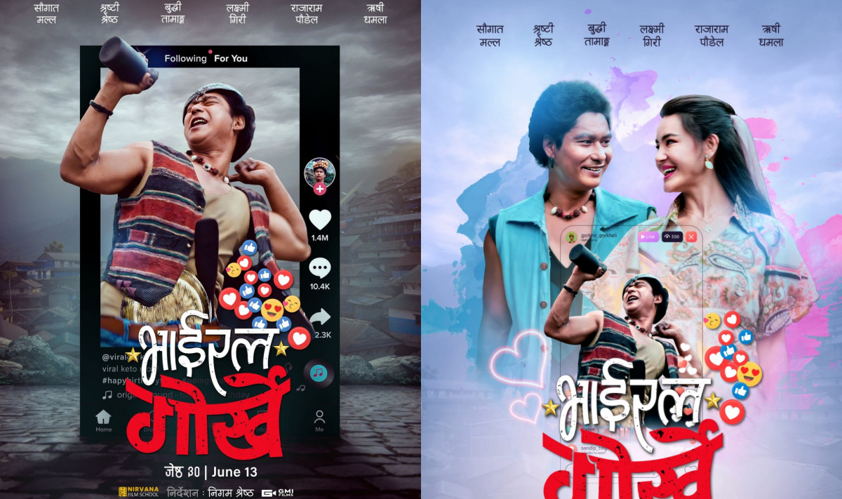 काठमाडौं := चलचित्र ‘भाइरल गोर्खेको फर्स्टलुक सार्वजनिक गर्दै प्रदर्शन मिति घोषणा गरिएको छ । शुक्रबार भयालेनटाइन डेको अवसरमा सार्वजनिक पोस्टरमार्फत् चलचित्र आगामी वर्षको जेठ ३० गतेदेखि सिनेमाघरमा आउने जानकारी दिइएको हो ।