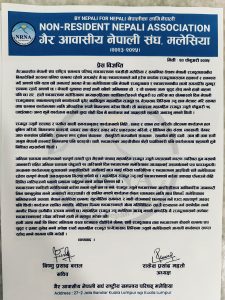 एनआरएनए मलेसियाद्वारा बिहिवार आयोजित एक पत्रकार सम्मेलनमार्फत अचानक कार्यक्रममा दूतावासको अनुपस्थितिले एनआरएनए मलेसिया , एनआरएनए एसिया प्यासिफिक र एनआरएनए आइसिसीसँगै मलेसियामा रहेका सम्पूर्ण नेपाली जनसमुदायमा थप निराशा थपिने सम्भावना बढेको भन्दै प्रेस विज्ञप्ति जारी गरेको हो ।