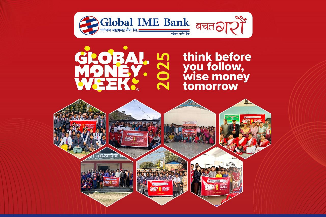 काठमाडौं := ग्लोबल आइएमई बैंक लिमिटेडले ग्लोबल मनि विक २०२५को सेरोफेरोमा विद्यार्थी तथा युवा युवतीहरु लक्षित वित्तीय साक्षरता कार्यक्रमहरु सप्ताहव्यापी रुपमा सञ्चालन गरेको छ । बैंकले युवा तथा विद्यार्थी लक्षित वित्तीय साक्षरता सम्बन्धी विभिन्न कार्यक्रमहरु सातवटै प्रदेशहरुमा संचालन गरेको हो ।