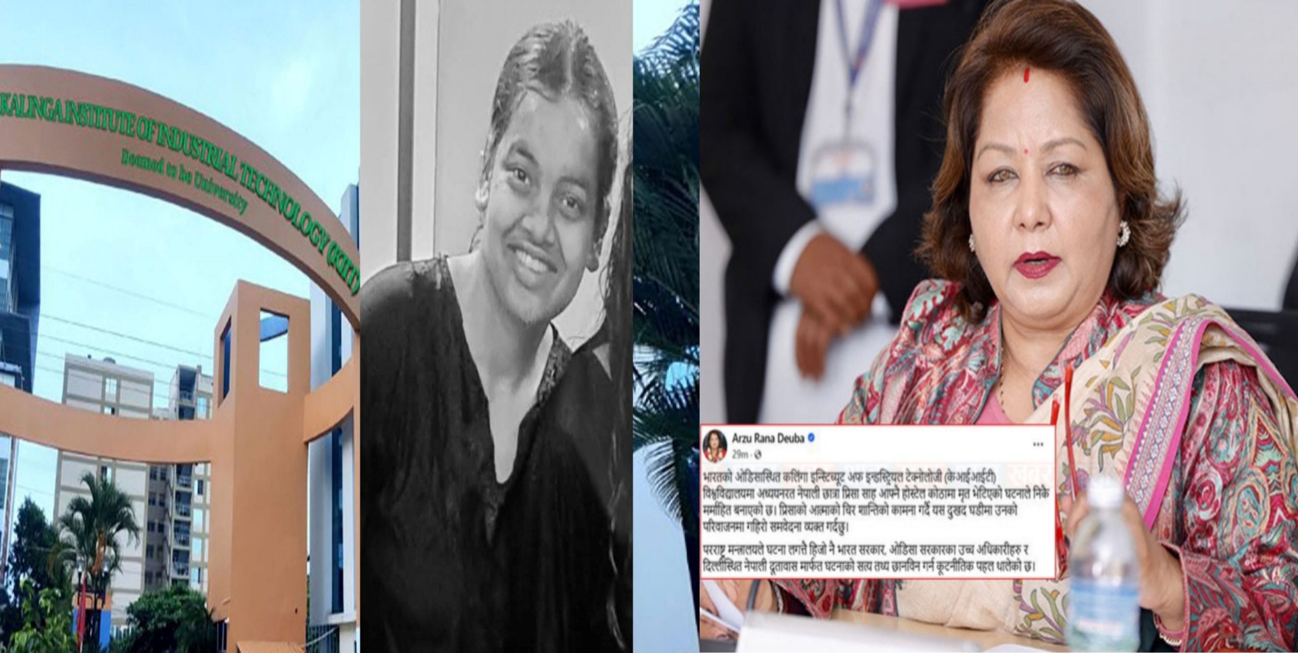 काठमाडौं := परराष्ट्रमन्त्री आरजु राणा देउवाले भारतको ओडिसास्थित कलिंगा इन्स्टिच्यूट अफ इन्डस्ट्रियल टेक्नोलोजी (केआईआईटी) विश्वविद्यालयमा अध्ययनरत नेपाली छात्रा प्रिशा साह मृत भेटिएको घटनाले मर्माहत भएको बताउनुभएको छ ।