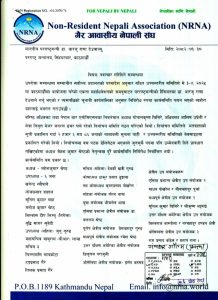 यसैगरी अध्यक्ष श्रेष्ठले नेपाल सरकार, माननीय परराष्ट्र मन्त्री डा। आरजु राणा देउवा, परराष्ट्र सचिव लगायत यस अभियानमा सहयोग गर्ने सबैलाई धन्यवाद दिँदै अभियानलाई सशक्त बनाउनका लागि एकजुट हुन अपिल गरेका छन। ‘अब धेरै भयो, एनआरएन अभियानलाई उचाइमा र्पुयाउन सबैको सामूहिक पहल जरुरी छ, अब हामी एकजुट भएर सरकारसँग आफ्ना मुद्दाहरू सम्बोधन गराउन अभियानमा जुट्ने बेला आएको छ,ु उनले भने।