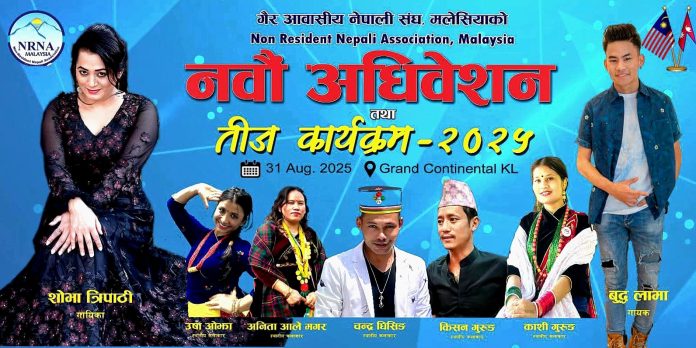 क्वालालम्पुर (मलेसिया):= गैर आवासीय नेपाली संघ “एनआरएनए” एनसीसी मलेसियाको आयोजनामा नवौं अधिवेशन तथा तीज कार्यक्रम – २०२५ आयोजना हुने भएको छ ।