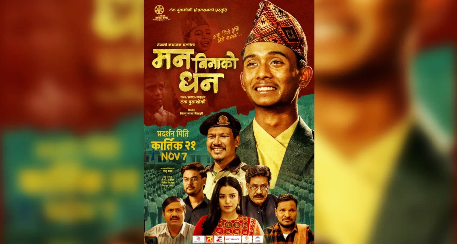 यसअघि सार्वजनिक पोस्टरमा भने गायक तथा अभिनेता अशोक दर्जीलाई मात्र देखाइएको थियो। सामाजिक विषयवस्तुमा आधारित यो चलचित्र ‘मनबिनाको धन’ मा कथा निर्देशक बुढाथोकी स्वयंले लेख्नुभएको हो भने पटकथा तथा संवाद शिवम् अधिकारीले तयार पार्नुभएको हो ।