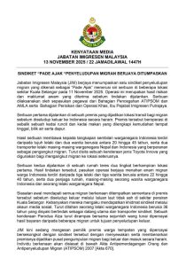 क्वालालम्पुर (मलेसिया):= “राष्ट्रको सुरक्षा हाम्रो साझा जिम्मेवारी हो” भन्ने मूल नाराका साथ यतिबेला मलेसियाली अध्यागमन विभाग “इमिग्रेशन” ले अवैधानिक विदेशी र अवैध कामको विरुद्ध देशव्यापी छापामारी सुरु गरेको छ।