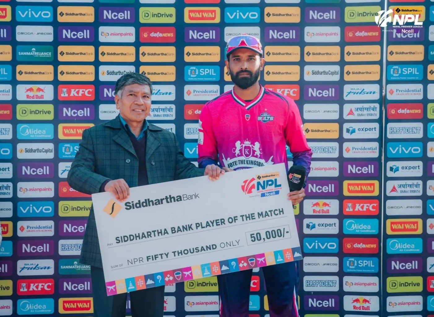 आजको जितमा अनिल शाह ‘म्याच विनर’ बने । ६१ रन हिर्काउनुका साथै एक विकेट पनि झारेका अनिल ‘प्लेयर अफ द म्याच’ समेत चुनिए । जितपछि सञ्चारकर्मीसँगको कुराकानीमा शाहले ‘प्लेअफ’को सम्भावना बाँकी रहेको बताउनुभयो ।