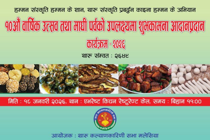 “थारु संस्कृतिको संरक्षण, संवर्द्धन र प्रवर्द्धन हाम्रो अभियान, समानुपातिक समावेशी पहुँचका लागि सम्पूर्णमा आह्वान” भन्ने मूल नाराका साथ थारु कल्याणकारिणी सभा मलेसियाको प्रमुख आयोजनामा यही जनवरी १८ तारिख आइतबार दिउँसो १२ बजे क्वालालम्पुरमा थाकस मलेसियाको १०औँ वार्षिकोत्सव तथा माघीको अवसरमा शुभकामना कार्यक्रम आयोजना गरी माघी मनाउने तय भएको हो।