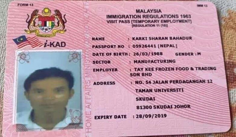 दैलेख जिल्ला दुल्लु नगरपालिका ३ का सरन बहादुर कार्की मलेसियाको जोहोरबारुमा ताइ कि फोर्जिन फुड ट्रेडिङ कम्पनीको कपडा फ्याक्ट्रीमा काम गर्थे ।