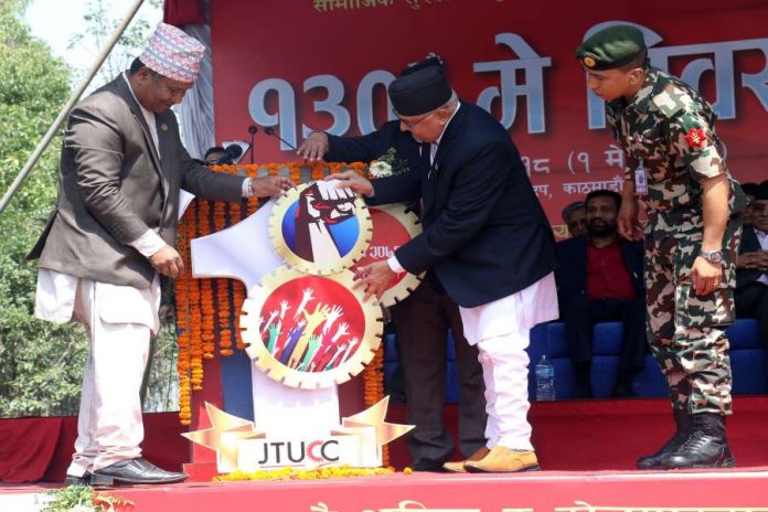 काठमाडौं । प्रधानमन्त्री केपी शर्मा ओलीले विभिन्न कालखण्डमा भएका नेपालको श्रमिक आन्दोलनले ठूलो सफलता हासिल गरेको बताएका छन् । संयुक्त टे«ड युनियन समन्वय केन्द्रद्वारा १३०औँ मे दिवसका अवसरमा भृकुटी मण्डपमा आज आयोजित समारोहलाई सम्बोधन गर्दै उनले भने, “हाम्रो रगत, पसिना र मेहनत खेर गएको छैन, मजदूर आन्दोलनको उपलब्धिलाई निश्चित उचाइमा पु¥याइएको छ ।”