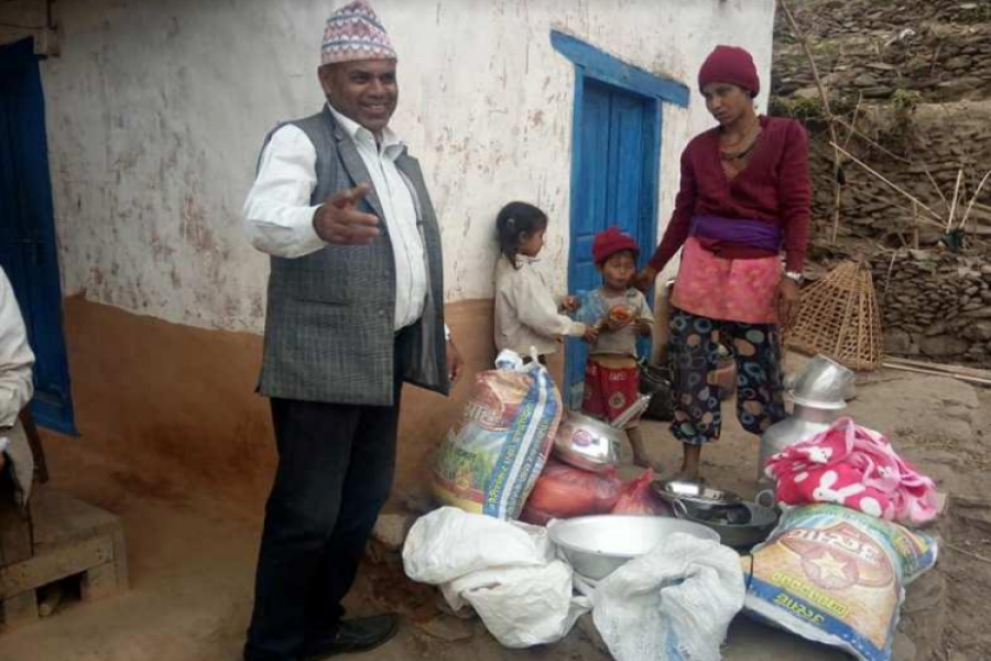 वस्दै आएको घरमा गत मंगलबार राती अचानक आगलागी भएपछि विचल्लीमा परेका बिक परिवारलाई बिहीबार गाउँपालिकाको तर्फबाट २० हजार नगद, ६० केजी चामल, नुन, तेल सहित पाल, कम्मल, भाडाँकुडाँ प्रदान गरिएको गाउँपालिका अध्यक्ष विश्वनाथ निरौलाले जानकारी दिए ।
