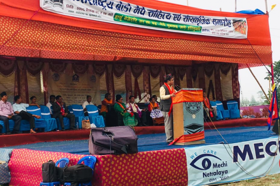 भद्रपुर । झापामा अन्तर्रा्ष्ट्रिय वोडो मेचे साहित्य एवं सांस्कृतिक सभा शनिबारबाट शुरु भएको छ । लोपोन्मुख मेचे जातिको संस्कार, संस्कृति, भाषा र लिपिको जगेर्ना गर्ने उद्देश्यले मेचीनगरस्थित धुलाबारीमा आयोजित सभाको प्रदेश नं १ का मुख्यमन्त्री शेरधन राईले उद्घाटन गरे ।