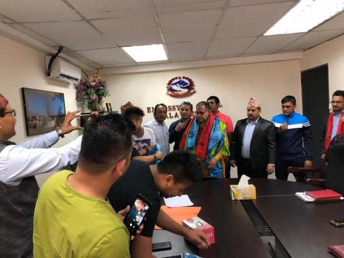 क्वालालम्पुर मलेसिया प्रबासी नेपाली हातेमालो कल्याणकारी समाज मलेसिया ले मलेसिया स्थित राजदुतावास क्वालालम्पुरमा आफ्नो संस्था को बिधान बारे जानकारी गराएको छ । आजै प्रवासी नेपाली हातेमालो कल्याणकारी समाज का अध्यक्ष लगायत सम्पूर्ण पदाधिकारीहरु सहितको सिंगो टिम आज दूतावासमै उपस्थित भै आफ्नो संस्थाको विधान बारे राजदुत लाई जानकारी गराएको छ ।
