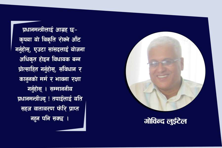 प्रधानमन्त्रीले आँट गर्ने ठाउँ र बेला यही हो । एकल बहुमत छ । प्रधानमन्त्री केपी शर्मा ओलीले आँट गरेर यो विकृतिको अन्त्य गर्न सक्नुहुनेछ । यो खर्च रोक्ने बुता अहिले प्रधानमन्त्री ओलीबाहेक अर्को कसैमा छैन । यो खर्चका पक्षपाती सांसद र अपारदर्शी सीमित लाभग्राहीले विरोध जनाऊलान् तर तिनले सरकारमाथि धावा बोल्न सक्दैनन् । प्रधानमन्त्रीलाई साथ दिने सांसदहरू पनि हुने नै छन् सत्तापक्ष र विपक्ष दुवैतिर । संसद्बाहिरबाट झन् ठूलो समर्थन प्राप्त हुने संकेत छँदैछ । प्रधानमन्त्रीलाई आग्रह छ– कृपया यो विकृति रोक्ने आँट गर्नुहोस्, एउटा सांसदलाई योजना अधिकृत होइन विधायक बन्न प्रोत्साहित गर्नुहोस्, संविधान र कानुनको मर्म र भावना रक्षा गर्नुहोस् । सम्माननीय प्रधानमन्त्रीज्यू ¤ तपार्इंलाई यति सहज वातावरण फेरि प्राप्त नहुन पनि सक्छ ।आयोजना छनोट र खर्चको प्रक्रिया व्यावहारिक पनि छैन । स्थानीय तहले कार्यान्वयन गर्ने भनिएको छ । आयोजना छान्ने सांसद, खर्चको अनुमति दिने उही सांसद अनि कार्यान्वयन गर्ने स्थानीय तह । अर्थात्, स्थानीय तह सांसदको आदेशपालक ¤ स्थानीय तहमा त्यस निर्वाचन क्षेत्रको सांसदको कुनै आधिकारिक हैसियत हुँदैन । उसले कुनै प्रकारले निर्देशन गर्न सक्दैन बजेट निर्माण, विकास आयोजना छनौट र बजेट विनियोजनामा । यस्तो हैसियतको सांसदको तजबिजमा हुने काममा स्थानीय तह लाग्नुपर्ने बाध्यात्मक अवस्था बनाइदिएको छ सरकारले । यसो गर्नु संघीयता र तीन तहका सरकारको अधिकार क्षेत्रको मर्म र भावनाविपरीत छ । जानी नजानी देशमा एउटा गलत काम भइरहेको छ । एउटा विकृत थालनीले निरन्तरता पाएको छ ।