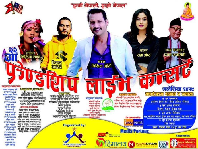 आगामी जुन ४ तारीख मंगलबारका दिन आइतम देवान हल , ५ जुन बुधबार बि एम पेनाङ देवान हलमा ,६ बिहीबार SJK चाइनिज स्कुल देवान हल बातुपहाड र फेब्रुअरी ७ शुक्रबार पोर्ट् केलाङ बसपार्क नजिकै कार्यक्रम गर्ने तय भएको छ । कार्यक्रममा मनोरञ्जन दिनको लागि गायिका नेलिमा थापामगर,मिस्टर आरजे,नायक निखिल उप्रेती मोडल रक्षा श्रेष्ठ, हास्य कलाकार दमन रुपाखेती आउने भएका छ्न ।