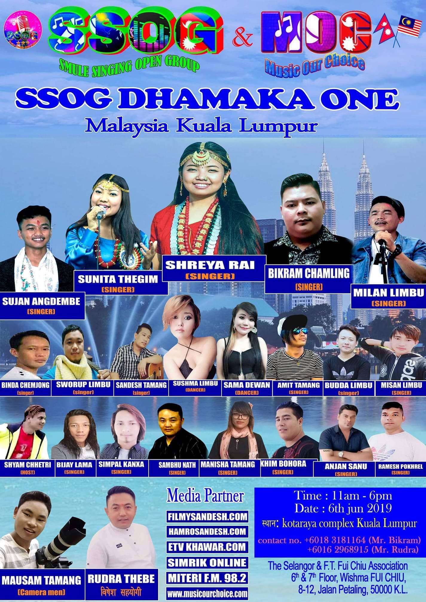 नेपाली गीत संगीतलाई संरक्षण र सम्बर्धन गर्दै आईरहेको एसएसओजी र एमओसी समुहले मलेसियाको क्वालालम्पुरमा स्थित कोताराया कम्प्लेक्समा यहि हरिरायाको अबसर पारेर जुन ६ तारिखका दिन धमाका वान कन्सर्ट आयोजना गर्ने भएको हो।