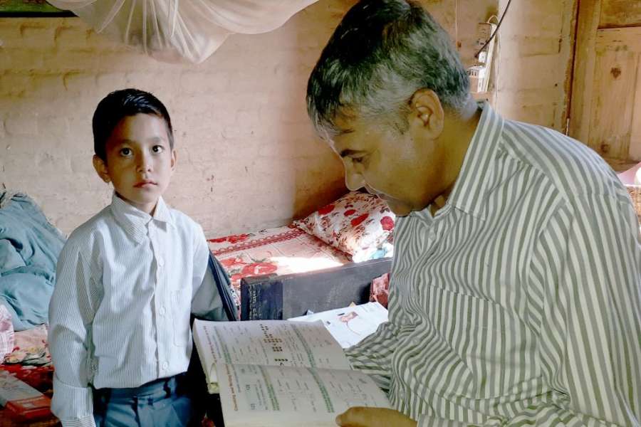 पाँचखाल नगरपालिका–१२ बालुवास्थित सुजन दनुवारको घरमा शनिबार अपराह्न पुग्नुभएका मन्त्री बाँस्कोटाले सुजनलाई शुक्रबार दिइएको गृहकार्य सरासर हेर्दै कक्षा १ बाट हासिल गरेको स्थानबारे प्रश्न गरे । ‘सेकेण्ड भएँ’ छ वर्षका सुजनले उत्तर फर्काइहाले । सुजनलाई बधाई भन्दै ‘स्कूलले के–के दियो त बाबु तिमीलाई ?” मन्त्री बाँस्कोटाको थप प्रश्नलगत्तै सुजनले भने, “किताब, कापी, पेन्सिल, मोजा, के–के हो, के–के ।”