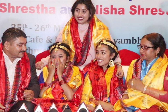 काठमाडौं । गत शनिबार बिहान ९ बजेबाट विश्व कीर्तिमानी राख्ने उद्देश्यले नृत्य सुरु गरेका एकै घरका दुई दिदीबहिनी रुविशा श्रेष्ठ र एलिसा श्रेष्ठले लक्ष्य पूरा गरेका छन् । यसअघि अमेरिकाका नागरिकले ३८ घण्टा ३० मिनेट युगल नृत्य गरेर राखेको विश्व कीर्तिमानी यी दुई नेपाली चेलीले ४१ घण्टा ५ मिनेट नाँचेर रेकर्ड तोडेका हुन् । सोमबार बिहान दुई बजे उनीहरूले नृत्य सुरु गरेका थिए ।