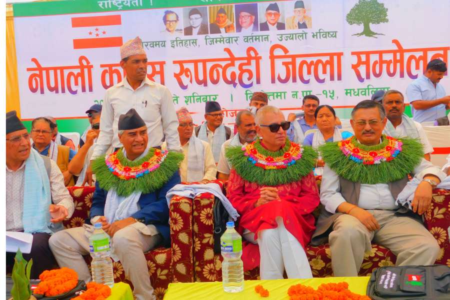 नेपाली काङ्ग्रेस रुपन्देहीले शनिबार रुपन्देहीको तिलोत्तमा नगरपालिकास्थित मधवलियामा आयोजना गरेको जिल्ला सम्मेलनलाई सम्बोधन गर्दै उनले सरकारविरुद्ध आन्दोलन गर्नुपर्ने स्थितिमा तयारी अवस्थामा रहन कार्यकर्तालाई निर्देशन दिए ।