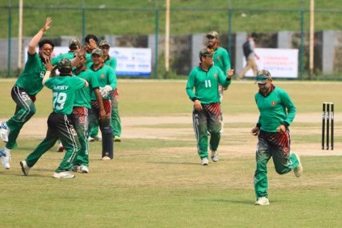 आफ्नो ब्याटिङ अर्डर परिवर्तन गर्दै ६ नम्बरमा ब्याटिङमा आएका आर्मीका कप्तान विनोद भण्डारीले आक्रामक ब्याटिङ गरेपछि त्यसअघि टस हारेर ब्याटिङको निम्तो पाएको आर्मीले निर्धारित ५० ओभरमा ६ विकेट गुमाएर ३१० रनको बलियो लक्ष्य बनाएको थियो ।