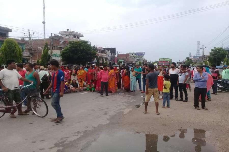 फोटो इलाका प्रहरी कार्यालय चन्द्रनिगाहपुर अगाडि पूर्व–पश्चिम राजमार्गको चन्द्रनिगाहपुर सडकखण्ड अवरुद्ध गर्दै आफन्तहरु ।