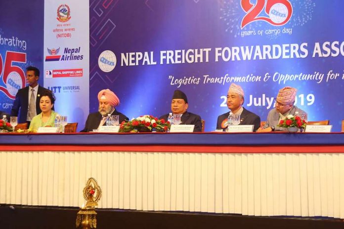 काठमाडौं । नेपाल फ्रेट फरवार्डस एसोसिएसन (नेफा) ले २५ औं कार्गो दिवस मनाएको छ । सोमबार राजधानीमा आयोजित कार्यक्रमको उद्घाटन गर्दै उपराष्टपति नन्दबहादुर पुनले व्यापार प्रवद्र्धनमा कार्गो व्यवसायीको महŒवपूर्ण भूमिका हुने बताए । देशमा एक मात्र अन्तर्राष्ट्रिय विमानस्थल रहनु, समुद्री मार्गबाट आउने जाने सामानका लागि भारतको कलकत्ता बन्दरगाह र विशाखापत्तनमको मात्र प्रयोगको बावजुद पनि देशको अर्थतन्त्रमा कार्गो व्यावसायले पु¥याउँदै आएको योगदान प्रशंसनीय रहेको उनको भनाइ छ । नेपाल भूपरिवेष्ठित नेपाल राष्ट्र भएकोले निर्यात तथा आयातका सामानको ढुवानीसँग सम्वन्धित सम्पुर्ण कार्यको अत्यन्तै महŒव रहेको बताए । उनले मल्टिमोडल टान्सपोर्ट सेवा ऐन संशोधन, वेयर हाउजिङ तथा सिएफएसको विकास एवं ऐन तर्जुमा, कार्गो लायविलिटी इन्सुरेन्स ऐन, पानीजहाज दर्ता तथा सञ्चालनसम्बन्धी ऐन तर्जुमा, कर तथा इलेक्ट्रोनिक कार्गो टयाकिङ सिस्टम( इसिटिएस) तथा अन्य समस्या समाधानका लागि सरकार तथा व्यवसायीबीच सहकार्यमा जोड दिएका छन् ।