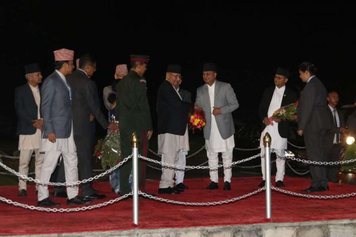 उनलाई बिदाइ गर्न राष्ट्रियसभाका अध्यक्ष गणेशप्रसाद तिमिल्सिना, उपप्रधान तथा रक्षामन्त्री ईश्वर पोखरेल, गृहमन्त्री रामबहादुर थापा, परराष्ट्रमन्त्री प्रदीपकुमार ज्ञवाली, नेपाल कम्युनिष्ट पार्टी (नेकपा)का महासचिव विष्णु पौडेललगायत विशिष्ट व्यक्तिहरु त्रिभुवन अन्तर्रा्ष्ट्रिय विमानस्थल पुगेका थिए ।
