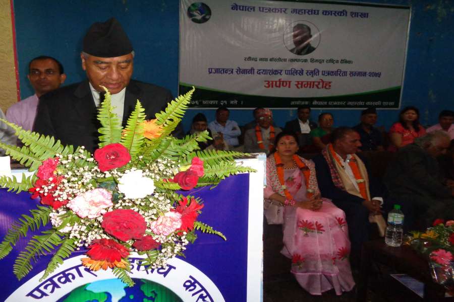 उनले ‘दयाशङ्कर पालिखे स्मृति पत्रकारिता पुरस्कार २०७५’ बाट पत्रकार रवीन्द्रनाथ बाँस्तोलालाई सम्मान गरे । प्रजातन्त्र सेनानी दयाशङ्कर पालिखेकोे स्मृतिमा स्थापित उक्त पुरस्कारको राशी रु ५५ हजार ५५५, सम्मानपत्र तथा दोसल्ला रहेको छ । २०५३ सालदेखि प्रदान गरिँदै आएको उक्त पुरस्कारको राशी रु ३३ हजार ३३३ रहेकोमा यस वर्षबाट वृद्धि गरी रु ५५ हजार ५५५ पु¥याइएको छ ।