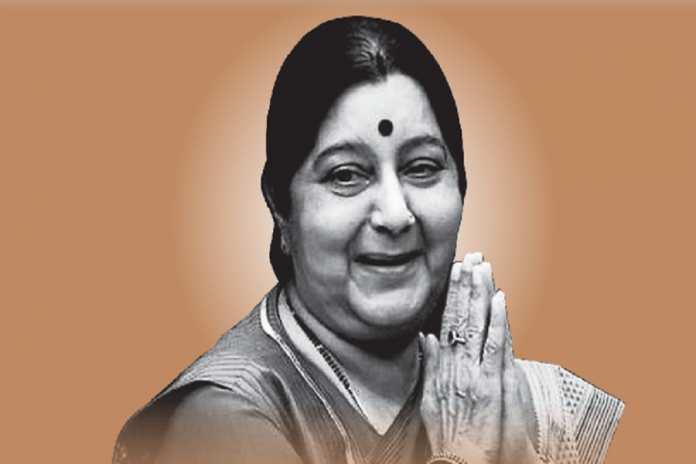स्वराजले सन् २०१४ मा गठन भएको मोदी सरकारको पहिलो कार्यकालमा विदेश मन्त्री नियुक्त भएकी थिइन् । उनले स्वास्थ्यको कारण देखाउँदै सन् २०१९ को निर्वाचनमा भने लोक सभाका लागि प्र्र्तिस्पर्धाबाट बाहिर बस्ने इच्छा व्यक्त गरे अनुसार उनलाई भाजपाले उम्मेदवार बनाएको थिएन ।