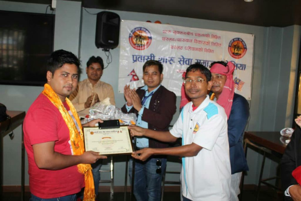 साथै कार्यक्रममा थारु समुदायको मुख्य परिकार मानिने घोङ्गीको समेत ब्यवस्था रहेको थियो भने संस्थापक/संरक्षक आरएन चौधरी थारु लाई समाजिक र सञ्चार क्षेत्रमा कार्यरत रहि योगदान पुर्याए बापत सम्मानपत्र , मायाको चिनो प्रदान गरि सम्मानित गरिएको थियो , स्वदेश फर्किने संस्थाका पदाधिकारीहरुलाई समेत सम्मानित गरेको थियो ।