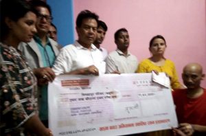 भदौ २५ मा सहयोग अभियानका अभियन्ता पत्रकार रामकृष्ण लामिछाने,नेपाली कांग्रेसका केन्द्रीय सदस्य अर्जुन प्र जोशी,नेत्री राधा कुमारी कुँवर,पत्रकार महासंघ पर्बतका अध्यक्ष छबिलाल तिवारी को उपस्थितिमा स्वदेश तथा विदेशमा रहेका नेपालीहरु बाट संकलित ११ लाख ७४ हजार रुपैयाँ को चेक हस्तान्तरण गरिएको थियो।