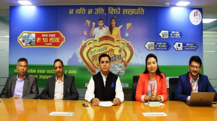 सिटी एक्स्प्रेसको यो उपहार योजना अन्तर्गत लक्की ड्र मार्फत उपभोक्ताहरुले दैनिक १० जनाले रु २०० को मोबाइल टप अप जित्न सक्नेछन्।