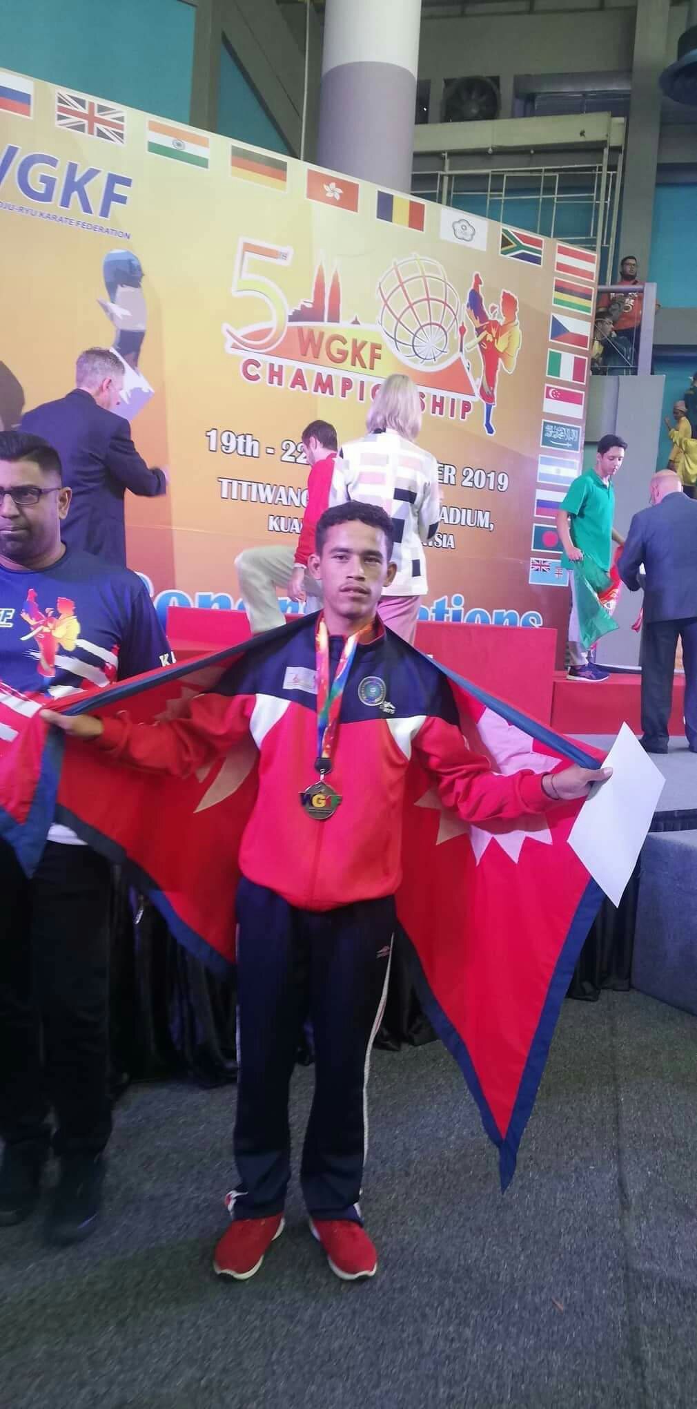 क्वालालम्पुर (मलेसिया):= मलेसियामा सप्पन्न ( 5th world GojuRyu karate do champioship ) को अफिसियल प्रतियोगितामा नेपाल लाई पहिलो पदक दिलाउन कमल ओलि सफल भएका छ्न।