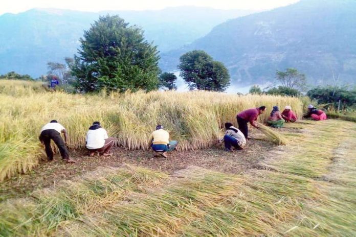 धान काट्दै किसान